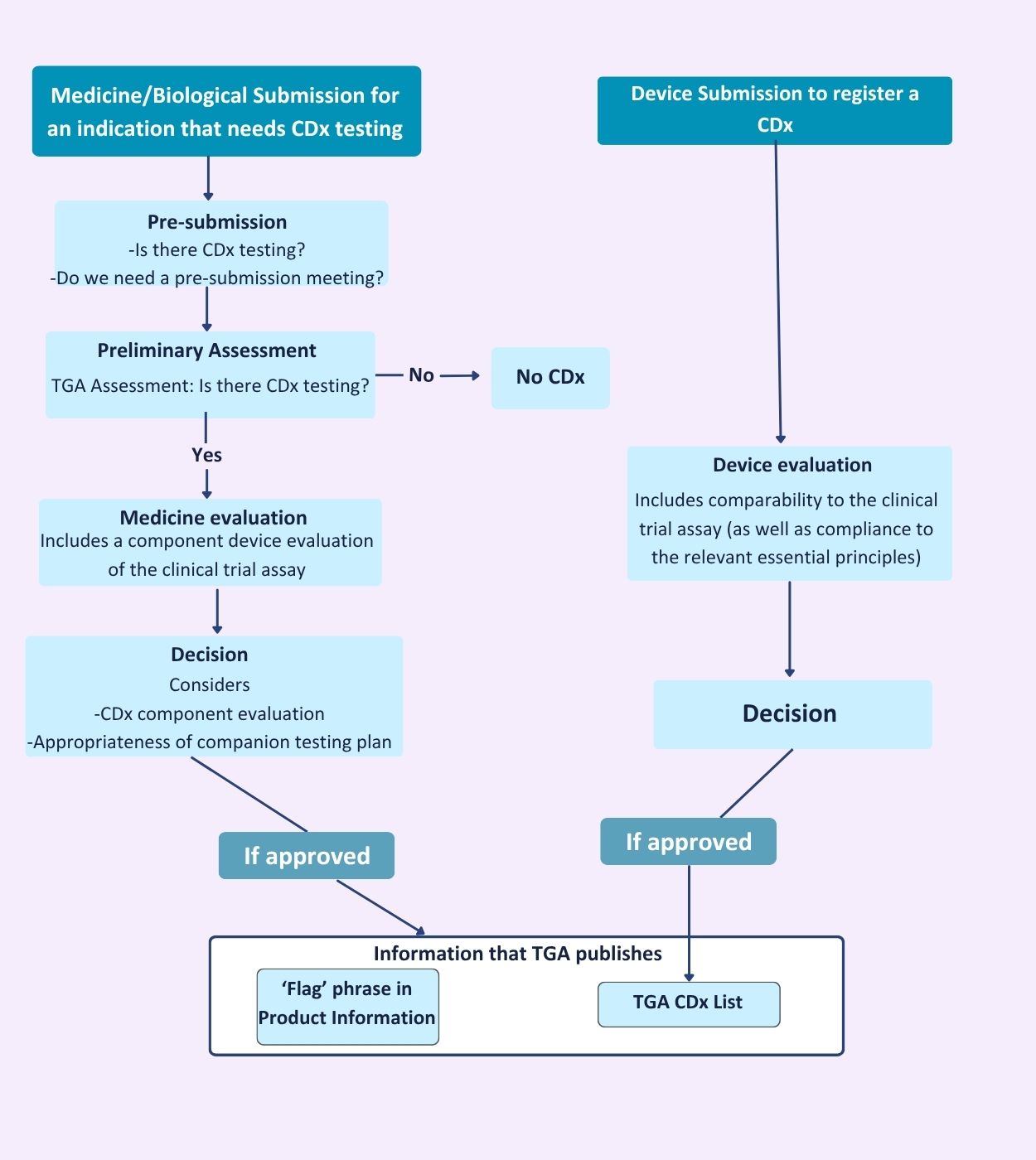 A Companion Diagnostic (CDx) is an in-vitro diagnostic (IVD) medical device that plays a critical role in personalized medicine treatment by providing essential information for the safe and successful administration of a certain drug or biological. With the rapid growth and its significant contribution in patient treatments, the Therapeutic Goods Administration, TGA implemented the guidance for CDx regulatory requirements that came into effect on February 1, 2020.