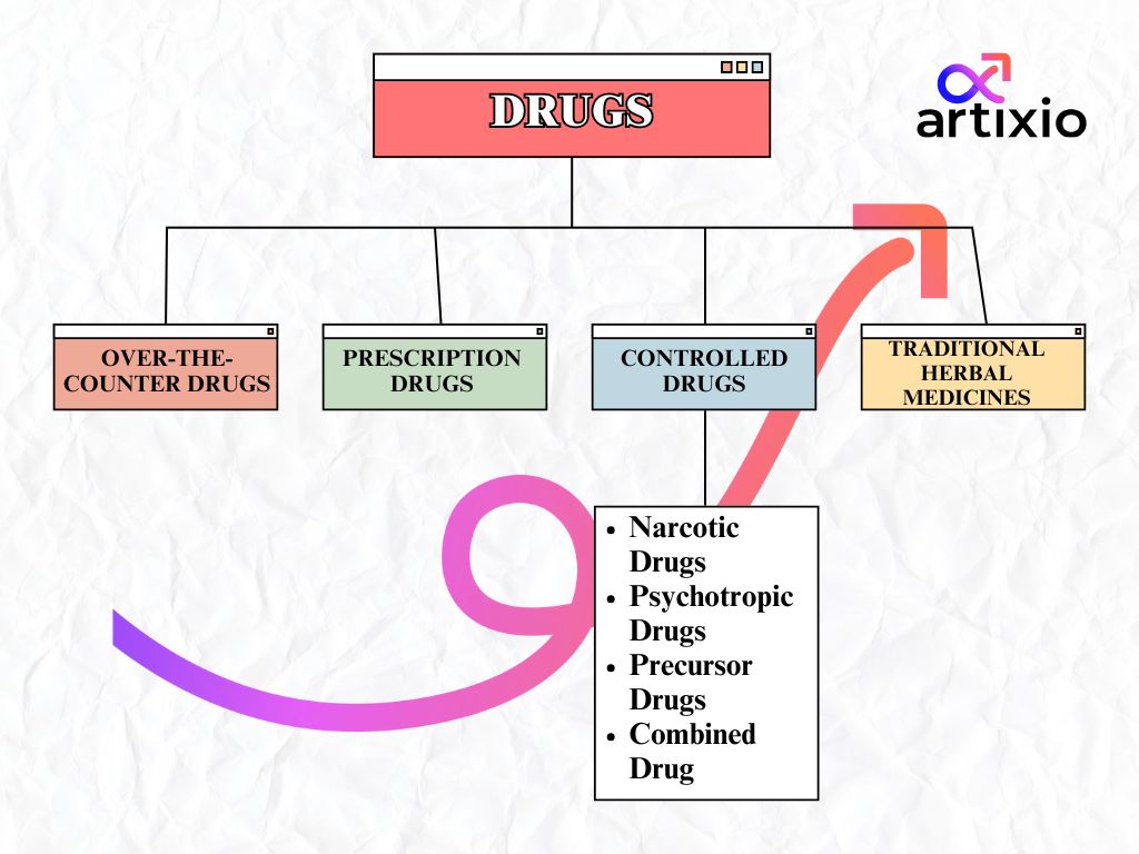 - Narcotic drugs – Drugs that contain narcotic active ingredient(s) or any drug that contains both active ingredient(s) and psychotropic active ingredient(s) regardless of availability of drug precursors